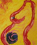 2005Tijdens de eerste zwangerschap van mijn tweelingzus, heeft een vriendin van haar een beeldje/torso van mijn zus gemaakt. Ik heb dit schilderij gemaakt toen ik op haar woning paste, toen zij met haar gezin op vakantie was. Het prachtige beeldje van mijn zwangere tweelingzus, was voor mij de aanzet en inspiratie om dit doek te maken! De inspiratie was dusdanig, dat ik 's avonds ben begonnen met schilderen, totdat ik het de volgende ochtend voltooid had.